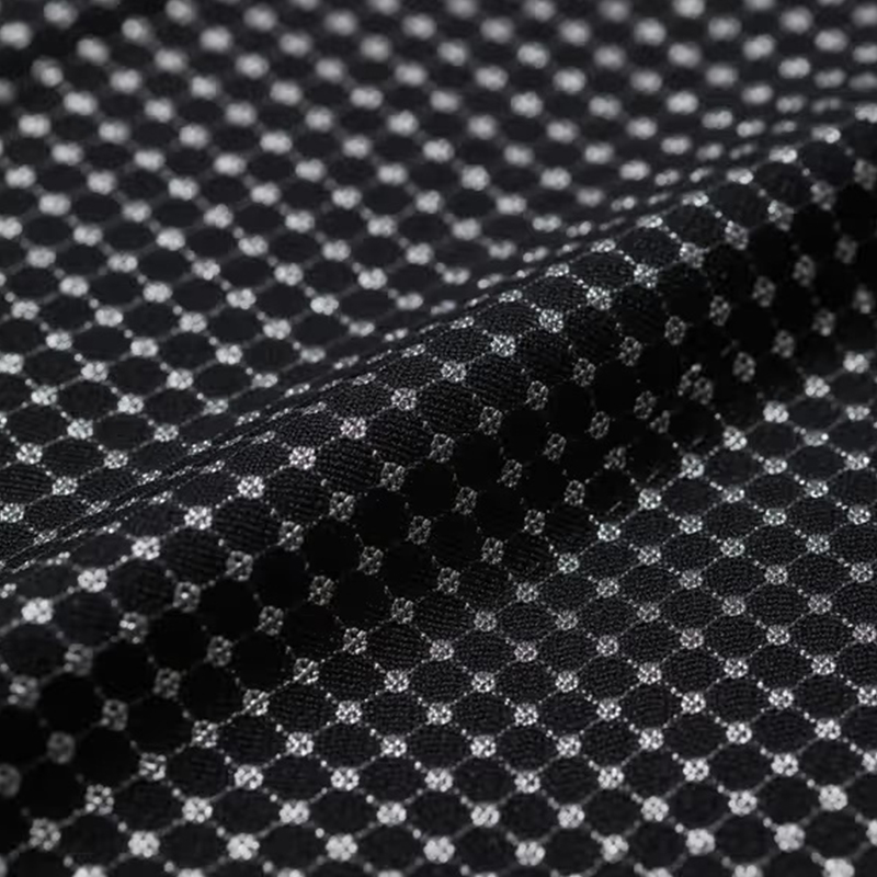 O pano Dot Mesh Birdseye adota uma estrutura exclusiva de furos de malha de pontos. Em comparação com o pano de olho de pássaro tradicional, os buracos do pano de olho de pássaro de malha de pontos são mais finos e regulares. Este design inovador melhora muito a respirabilidade e a função de transpiração do pano, tornando a circulação de ar mais suave e o suor evapora rapidamente, mantendo o usuário seco e confortável. Seja em exercícios extenuantes ou em clima quente, o pano de malha de pontos pode prevenir eficazmente a retenção de suor e proporcionar uma experiência confortável ideal. Devido à sua respirabilidade e absorção de umidade e desempenho de transpiração, o pano de malha de ponto de pássaro é muito adequado para a produção de roupas esportivas, roupas de verão e roupas casuais diárias. A textura leve e o toque confortável do pano de malha de pontos tornam-no uma escolha ideal para uso a longo prazo, adequado para entusiastas de esportes e pessoas que amam atividades ao ar livre. Quer se trate de equipamentos esportivos, como roupas de corrida, calças de ioga, roupas de ginástica ou roupas leves, como camisetas e shorts de verão, o pano de malha com pontos pode proporcionar o máximo conforto e evitar o desconforto causado por exercícios prolongados ou uso em altas temperaturas.
